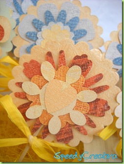 Sono bastati, la fedelissima Big Shot, dei fogli di campionario di tappezzeria, e degli spiedini in legno, per far volare farfalle e fiorire fiorelloni!!!