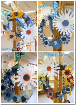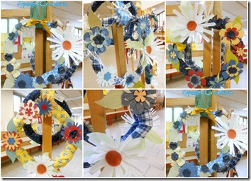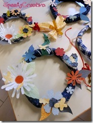 Incominciamo dalle ghirlande….giornali, stoffa ,nastri e vasetti dello yogurt!